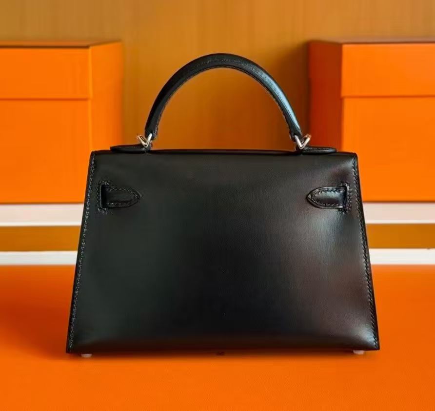 シルバーバックル付き本革ブラックレディースハンドバッグ